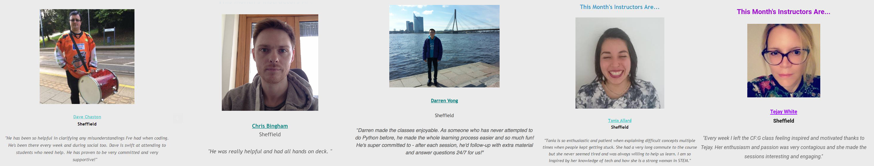 All the wonderful instructors who have taken the effort to deliver these sessions from their free time and deliver them well have all been nominated as the instructor of the month!